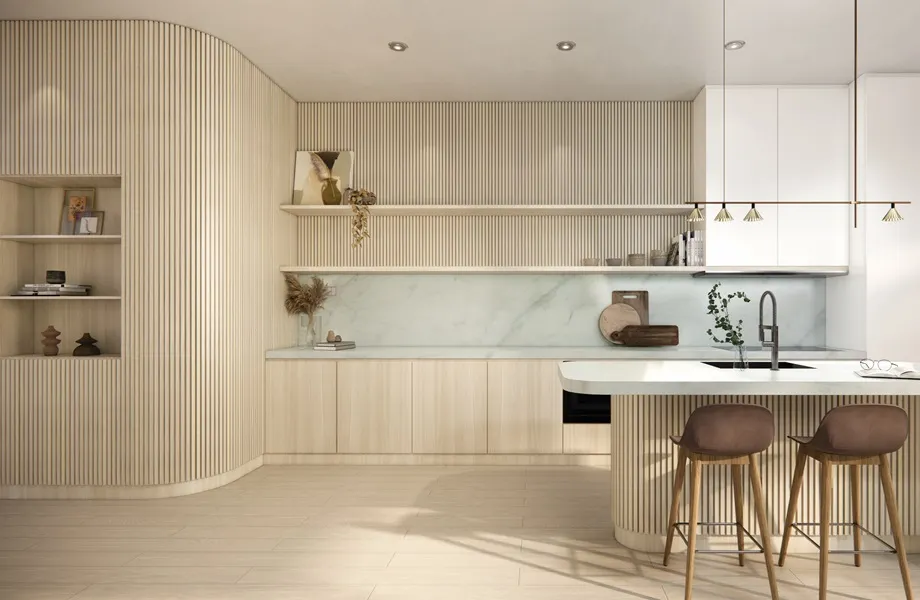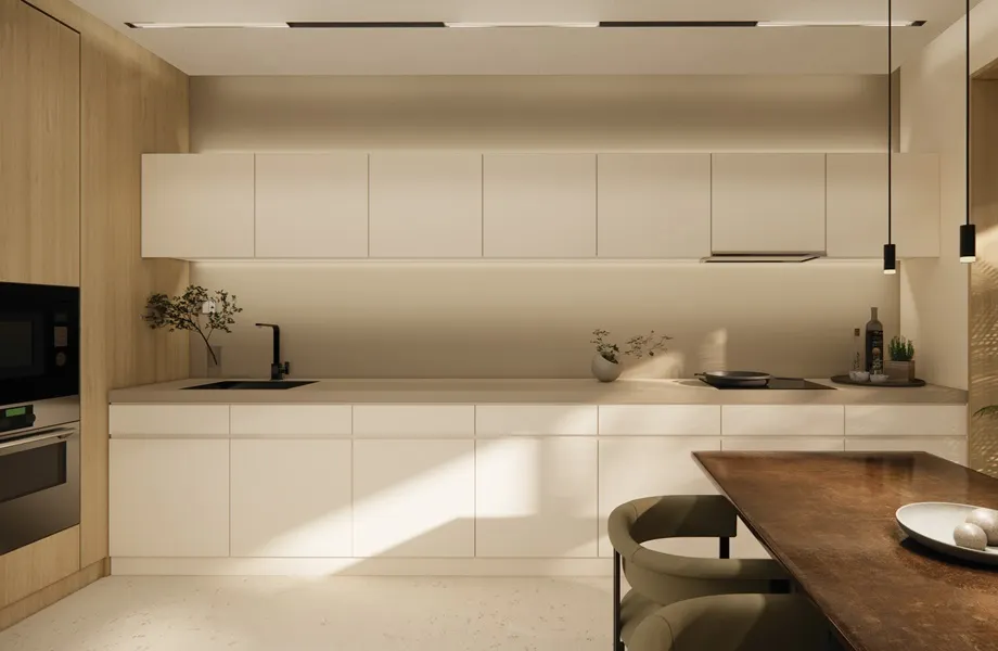 CR8578 Sund Elm, CR5018 Calacatta Cava, CR3200 Ultra White